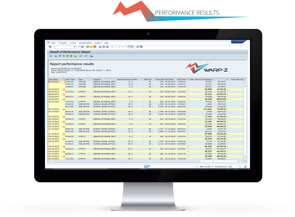 Warp-Z - Unique product, created and improved by our team, with the objective of accelerating the performance in the execution of customized programs in SAP and monitor / control the security of the SAP environment under the effect of applied parallelism. Our solution has all the records in the competent bodies, which prove our exclusivity in the SAP technology market.